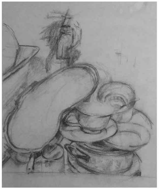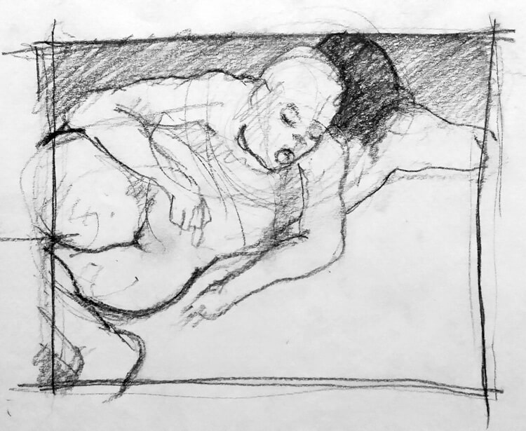 My drawings are studies intended for larger paintings, where compositions are created and destroyed. Here, ideas come to life. For me, drawing is not just about putting lines on paper but rather an exploration process. It involves experimenting with different compositions until a usable composition evolves. Sometimes, it may even mean destroying and starting anew. Through processes, new ideas are born, unleashing creativity.