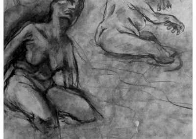 My drawings are studies intended for larger paintings, where compositions are created and destroyed. Here, ideas come to life. For me, drawing is not just about putting lines on paper but rather an exploration process. It involves experimenting with different compositions until a usable composition evolves. Sometimes, it may even mean destroying and starting anew. Through processes, new ideas are born, unleashing creativity.